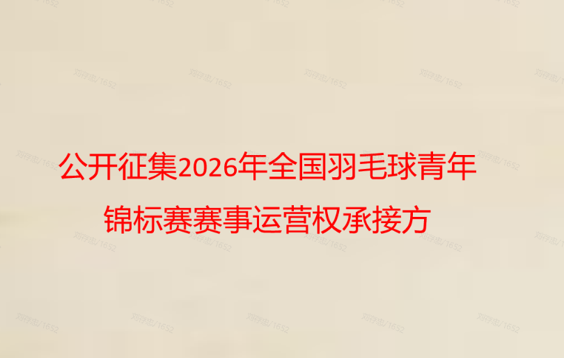公开征集2026年全国羽毛球青年锦标赛赛事运营权承接方